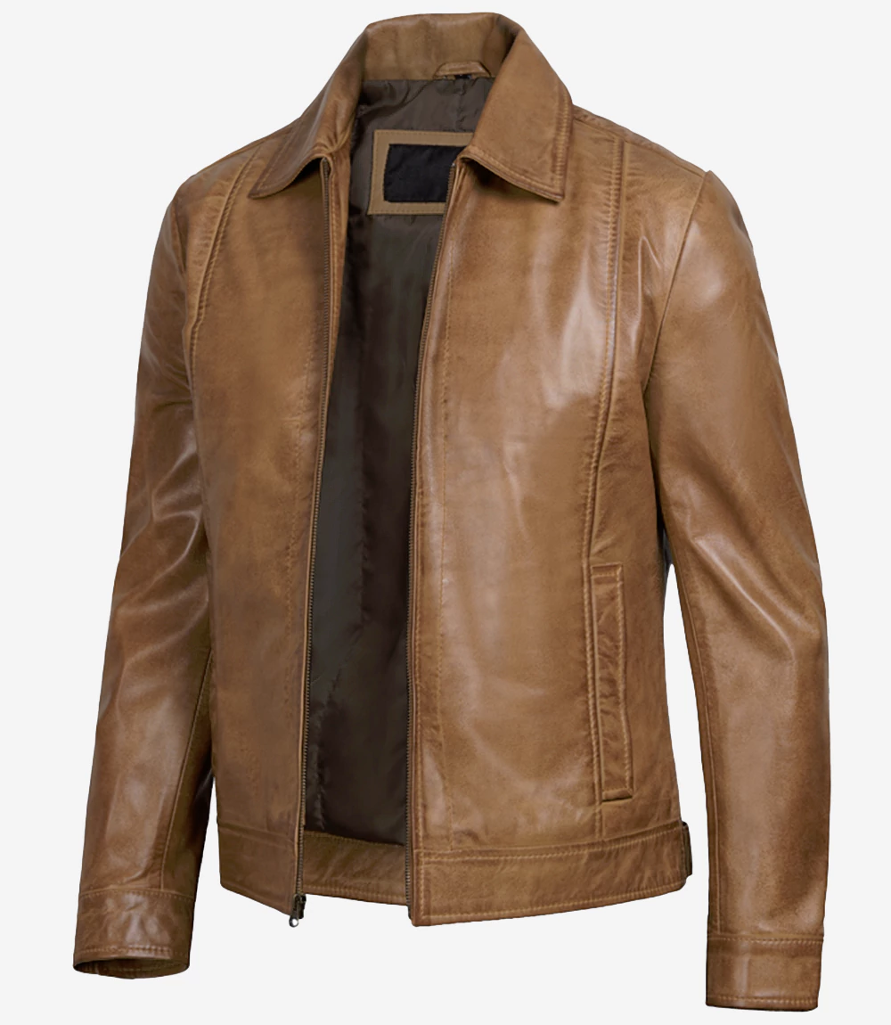 Channel your inner Bradley Cooper in this yellow waxed leather jacket with harrington vintage finishing. 100% real leather with quality stitching and styling. Front zip-fastening, two side and two inside pockets, one extra for cell phones.
