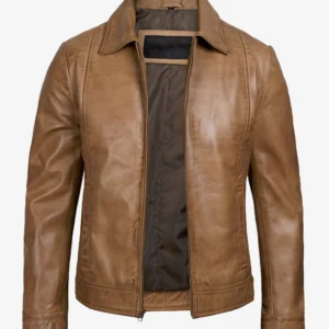 Men’s Yellow Wax Classic Shirt Collar Real Leather Jacket